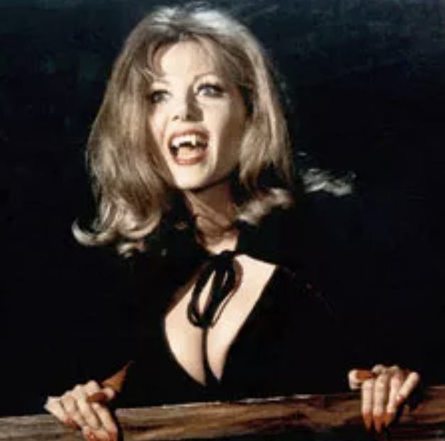 Hammer movies are earnest and plodding, a little hokey even, and almost glacial in terms of pacing and editing; but the gravitas of the leads make them come to spooky, gore-bespattered life. And the life--the blood is the life, I hear--they bring is a weird, pre-modern central Europe by way of swinging 60s London. And one of the favorite Hammer subjects was Vampires. Lee’s Dracula--who went on the cinematic rampage no less than seven times--was emblematic of the genre.